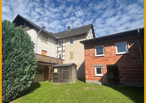Dieses ursprünglich in Fachwerk errichtete Zweifamilienhaus wurde in den 70er Jahren massiv umfangreich erweitert und umgebaut. Heute bietet es Ihnen viel Platz und flexible Nutzungsmöglichkeiten. Mit einer Wohnfläche von ca. 270 m², verteilt auf zwei Etagen, eignet sich die Immobilie ideal für Mehrgenerationenwohnen, die Kombination aus Eigennutzung und Vermietung oder für Familien, die Wert auf Raum und Gestaltungsfreiheit legen. Zuletzt wurde das Haus über 2 Hauseingänge genutzt. Im linken Teil befinden sich im Erdgeschoss ein Wohnzimmer, 3 weitere Zimmer, Küche und ein WC. Im Obergeschoss sind zudem 2 weitere Zimmer gegeben. Im rechten Hausteil sind im Erdgeschoss ein Bad mit Wanne und Dusche im Stil der 90er Jahre sowie ein Abstellraum gegeben. Durch das separate Treppenhaus gelangen Sie in den Hauptwohnbereich mit Wohnzimmer, zwei Schlafzimmern, Küche und Duschbad. Im Dachgeschoss ist zudem auf ca. 50 m² Ausbaufläche gegeben. Die Immobilie verfügt zudem über 2 Garagen und 2 Stellplätze direkt davor im Freien. Zwei Balkone erweitern den Wohnbereich und bietet zusätzlichen Platz für Erholung im Freien. Ebenso steht dafür das große Grundstück bereit. Das Haus und die Garagen sind unterkellert und stellen damit praktische Abstell- und Nutzflächen bereit.