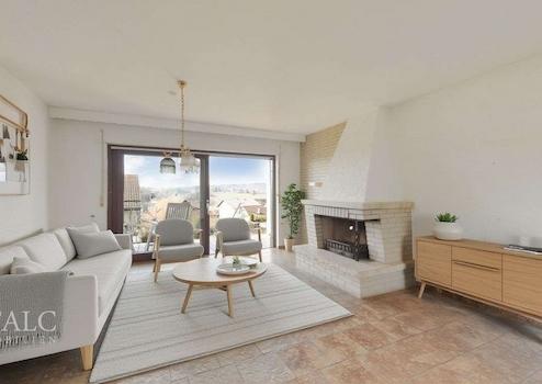 Über eine Treppe im Flur gelangen Sie in das Obergeschoss, das eine weitere Wohneinheit bieten könnte. Auch hier stehen Ihnen eine Küche, ein Schlafzimmer, ein Badezimmer sowie ein Esszimmer und ein Wohnzimmer zur Verfügung. Von dieser Etage aus erreichen Sie zudem eine große Terrasse mit herrlichem Weitblick.