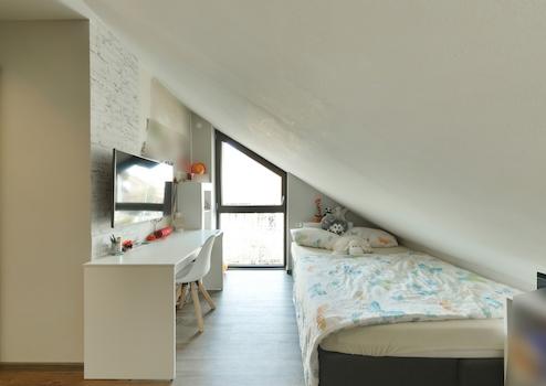 Das Haus wurde zuletzt 2019 modernisiert und befindet sich in einem gepflegten Zustand. Das voll ausgebaute Dach eröffnet zusätzlichen Wohnraum, der vielfältige Nutzungsmöglichkeiten bietet. Der Garten lädt zum Entspannen ein, während Terrasse und Balkon Außenbereiche für sonnige Stunden in der Natur bereithalten.