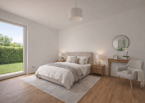 Das Schlafzimmer ist angenehm geschnitten und ruhig ausgerichtet – ideale Voraussetzungen für erholsame Nächte und entspannte Morgenstunden. Hier entsteht ein privater Rückzugsort, der Ruhe und Geborgenheit ausstrahlt. Zusätzlich befindet sich hier genug Platz für einen Arbeitsplatz/Homeoffice-Bereich.