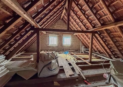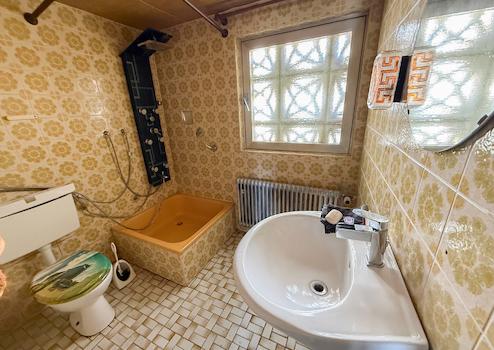 Dieses massiv gebaute Zweifamilienhaus aus dem Jahr 1960 bietet viel Potenzial für individuelle Wohnkonzepte. Auf zwei Etagen verteilen sich acht Zimmer, darunter fünf Schlafzimmer und zwei Badezimmer. Ein besonderes Potenzial bietet das ausbaufähige Dachgeschoss, das zusätzlichen Wohnraum nach individuellen Vorstellungen schaffen kann.