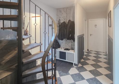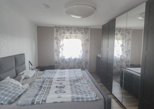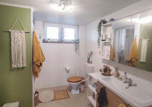 Die durchdachte Raumaufteilung überzeugt: Im Erdgeschoss erwartet Sie die Hauptwohnung mit hellem Wohnzimmer, Essbereich, Schlafzimmer, Küche, Bad und Hauswirtschaftsraum. Ein großzügiger Balkon mit schönem Ausblick sorgt für entspannte Stunden.