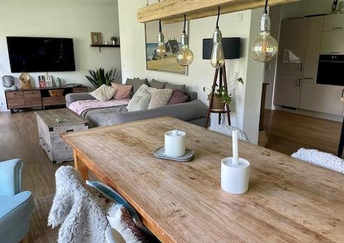 Der große Wohn-, Ess- und Kochbereich ist halboffen gestaltet,