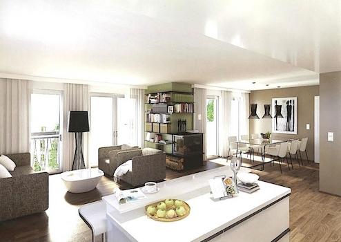 Dieses 5-Zimmer-Penthouse in Haus II „Calluna“ erstreckt sich über das gesamte Dachgeschoss – ohne Nachbarn nebenan oder darüber. Absolute Privatsphäre. Rundum Licht. Freier Blick ins Grüne.