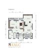 Zum Raumprogramm der Einliegerwohnung gehören ein Badezimmer mit Badewanne, ein Büro, zwei Schlafzimmer, ein Wohn- und Esszimmer und eine Küche mit separatem Vorratsraum. Weiterhin befindet sich der Heizungsraum im Untergeschoss.