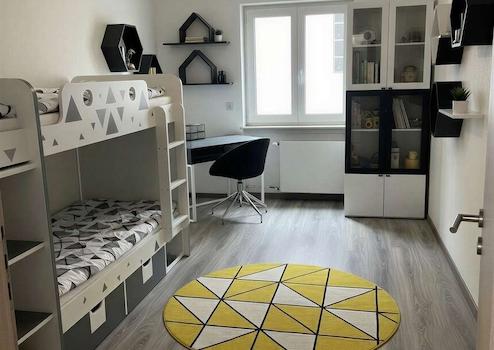 - Bodenbeläge: Laminat in Wohnräumen, Fliesen in Küche und Bad