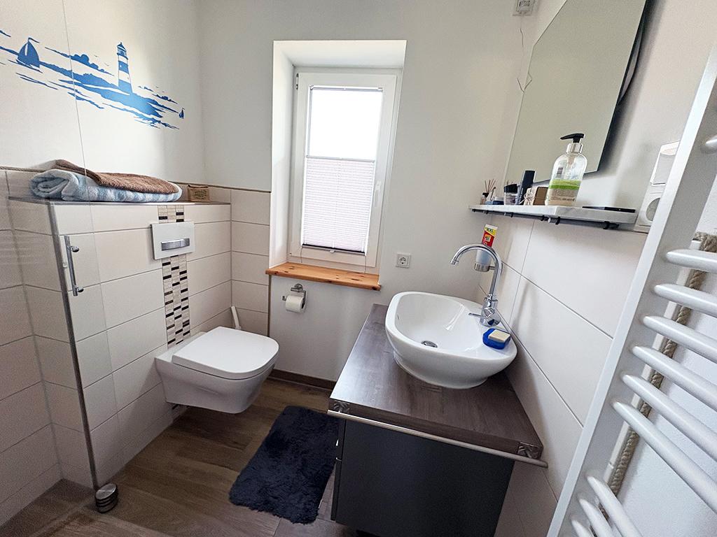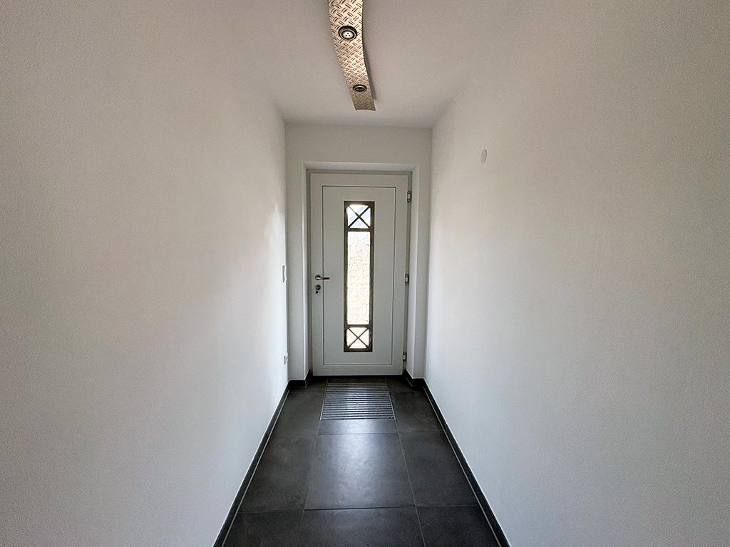 Wohn- und Esszimmer mit angrenzender offener Küche und Terrassenzugang, Elternschlafzimmer, Kinderzimmer, Flur, Bad (mit Dusche und Ankleidebereich), Gäste-WC (mit Dusche), Hausanschlussraum