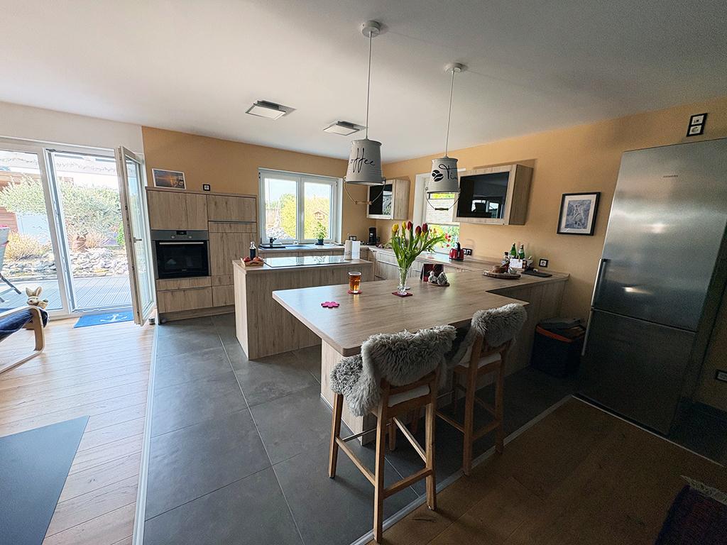 Schon beim ersten Eintreten spüren Sie, mit wie viel Liebe das Haus gebaut wurde. Große Fenster mit viel Lichteinfall runden das offene Gesamtbild ab; der Wohn- und Essbereich bietet eine ganz besondere Atmosphäre.
