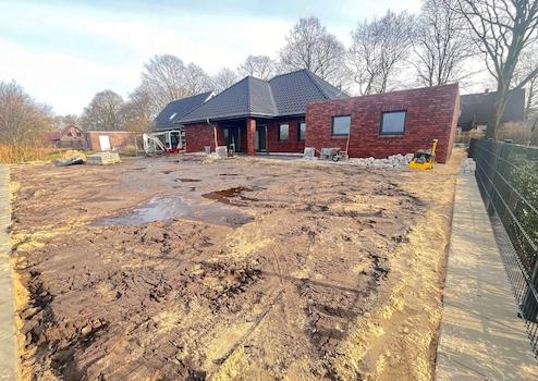 Das Gartengrundstück wird sehr pflegeleicht mit Raseneinsaat angelegt. Die Hofzufahrt und Terrassenflächen sowie ein Weg um das Objekt werden bepflastert.