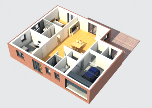Der gesamte Wohnbereich wird mit einer einheitlichen Bodenfliese bestückt. Die Schlafzimmer sowie die Ankleide können nach Wunsch ebenfalls mit Bodenfliesen oder einem Domestikboden verlegt werden. Alle Räume des Wohnhauses verfügen über eine Fußbodenheizung.
