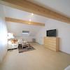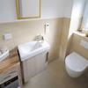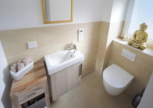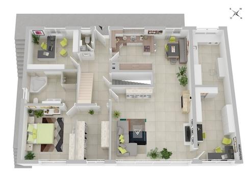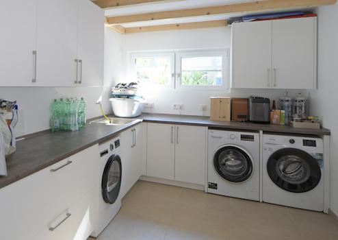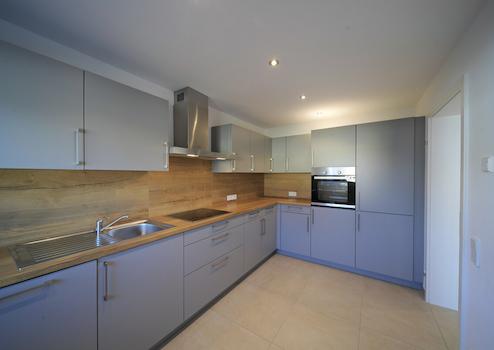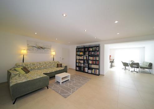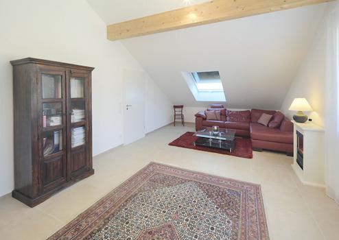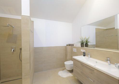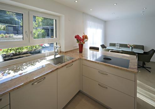 Am einem flachen Hang gelegen, finden Sie im unteren Bereich eine Einliegerwohnung (oder Büro, Praxis, Agentur) mit eigenem barrierefreien Zugang. Auf 73 m² Wohnfläche gibt es hier drei Zimmer, ein großes Bad und eine große Einbauküche.