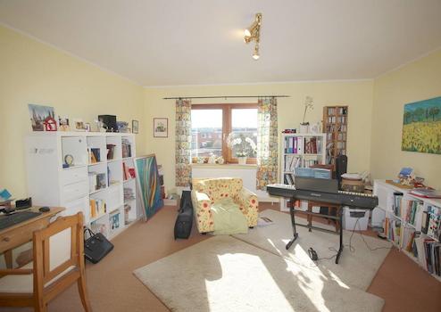Eine Wohnung zum Wohlfühlen! Die Dachgeschosswohnung, bestehend aus 2 Zimmern, Küche, Bad (Duschbad mit Fenster und Waschmaschinenanschluss), Abstellkammer und Süd-Balkon, wirkt mit dem komf. Bodenbelag (fußwarmer und ...