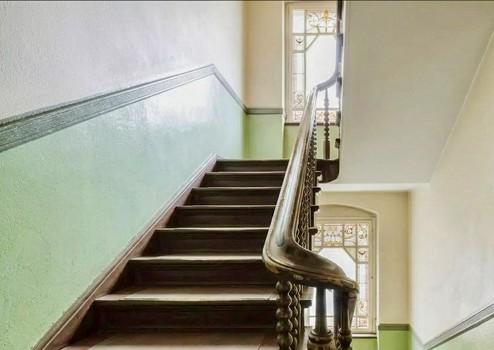 Die Wohnung befindet sich im 2.OG eines typischen Gründerzeitbaus, das im Jahr 1910 errichtet wurde und befindet sich in einem sehr guten Zustand. Der fünfgeschossige, unterkellerte Bau besteht ausschliesslich aus einem sonnigen Vorderhaus. Alle Wohnungen werden über das historische Entree und Treppenhaus mit Bleiglasfenstern erschlossen. Zum Grundstück gehört ein heller, grüner Innenhof.