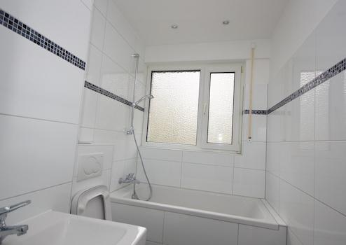 Das Badezimmer ist gefliest, die Zimmer sind mit Laminatböden ausgestattet. Die Einbauküche (mit Herd, Kühlschrank, Spülmaschine und Abzugshaube) ist nicht neu aber in einem guten Zustand. In unmittelbarer Nähe des Hauses gibt es immer ausreichend Parkmöglichkeiten.