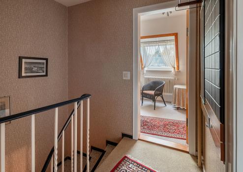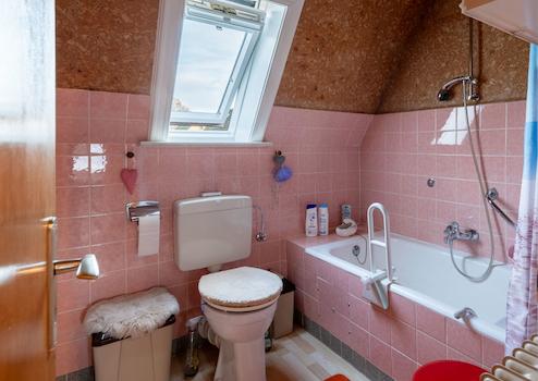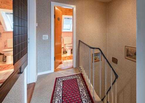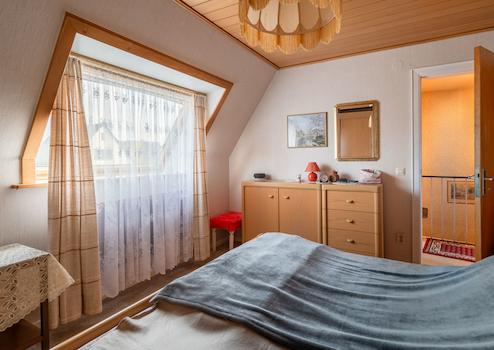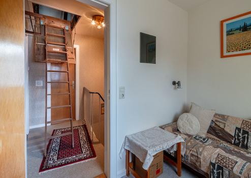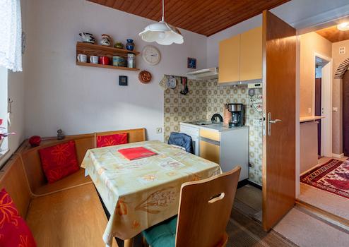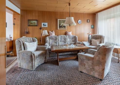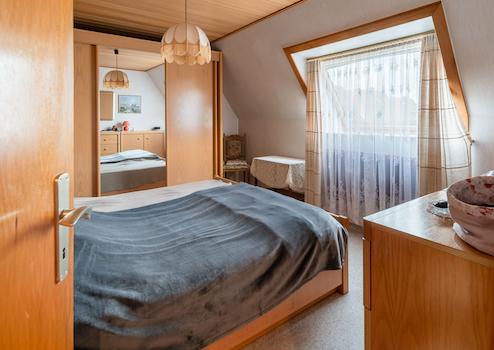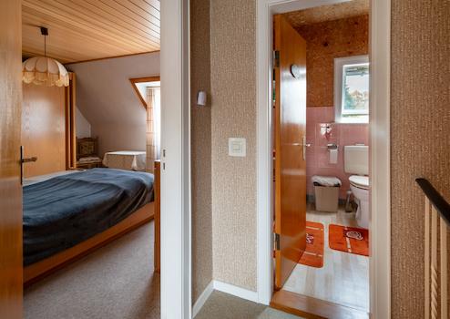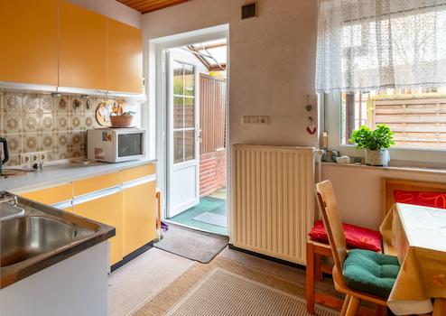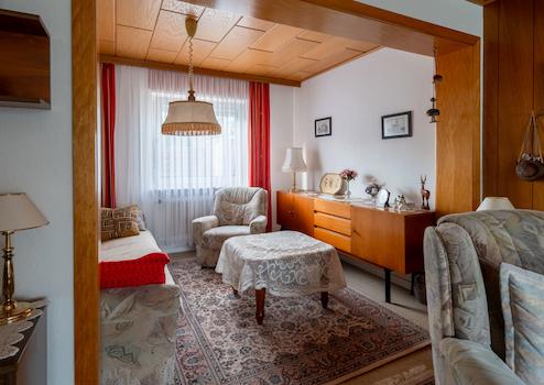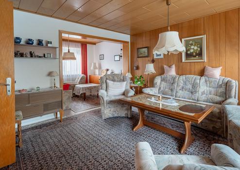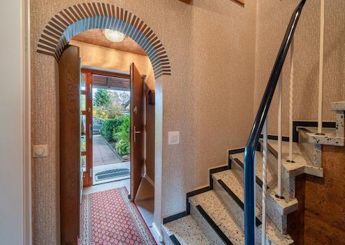 Das liebevoll gepflegte Reihenmittelhaus wurde 1965 auf dem 246 m² großen Grundstück errichtet. Durch den Vorgarten gelangt man zum Haupteingang. Hier führt ein Windfang (mit angrenzendem Gäste-WC) in den Flur des Erdgeschosses, von dem aus der geräumige Wohn-Essbereich und die Küche (mit kleinem Essplatz) erreicht werden. Von der Küche führt eine Außentüre zur windgeschützten Terrasse (Lärchenzaun, neu in 2022) bzw. zum Garten (mit kleinem Gartenhäuschen). Über eine Außentreppe geht es zum Teilkeller, der aber auch vom EG über eine Innentreppe zu erreichen ist. Vom Flur im EG führt eine Treppe zum OG. Hier gibt es 3 weitere Zimmer (Schlafen, Kinder, Gäste, Arbeiten...) und ein Bad mit Wanne. Im OG gelangt man über eine Bodentreppe in den Spitzboden, der für individuelle Zwecke (z.B. als Hobbyraum) ausgebaut werden kann. Das Haus ist teilweise mit Rollläden ausgestattet (Wohnzimmer + Küche elektrisch) und wird von einer Erdgasheizung (Bj. 2009) versorgt. Die Internet-Anbindung ist gut: Lt. Online Auskunft der Telekom Magenta Zuhause mit max. 40 Mbit Upload und bis zu 175 Mbit Download.