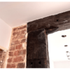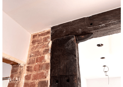-Sichtbare Holzbalken und Klinkerelemente