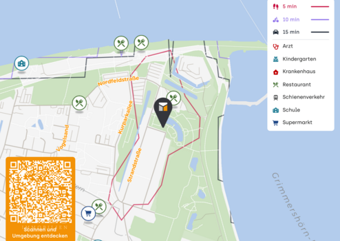 Für den täglichen Bedarf ist vieles schnell erreichbar. Einkaufsmöglichkeiten wie der Aldi Nord liegen in der näheren Umgebung, ebenso weitere Versorger. Auch praktische Anlaufstellen sind gut angebunden, etwa die Postbank in der Nähe. Wer gern spontan essen geht, findet mit dem Kurparkrestaurant zur Kugelbake eine attraktive Option ganz in der Umgebung.