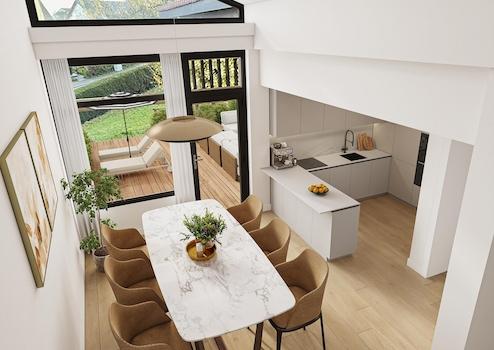 mit offenem Küchenbereich und direkter Verbindung