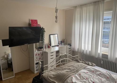 Das verfügbare WG-Zimmer mit der Nummer 3 ist vollständig möbliert und verfügt über ein gemütliches 1,40 m breites Bett mit Matratze und Bettbezug, einen Schreibtisch mit Stuhl, eine Deckenlampe sowie einen Kleiderschrank. Vom Zimmer aus besteht direkter Zugang zum Balkon. Die Vormieterin zieht Ende April aus, sodass das Zimmer ab Mai zu Verfügung steht.