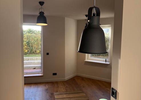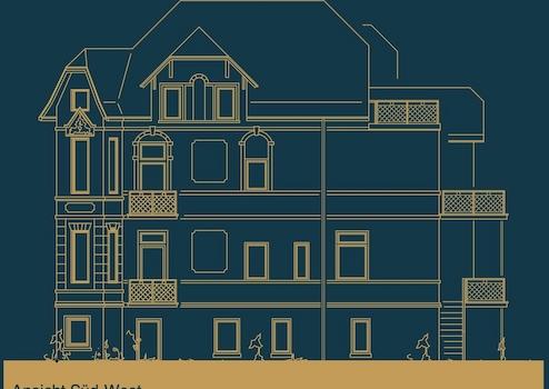 Auch gestalterisch ist die Orientierung eindeutig: Vorgesehen sind ruhige, hochwertige Materialien, wie etwa Eichenparkett, Fußbodenheizung und eine zurückhaltende, zeitlose Farbwelt. Leuchten, Türen und Einbauten können – angelehnt an die bestehende Wohnung – modern interpretiert werden, ohne den Charakter des historischen Hauses zu überdecken. Ziel ist eine Gestaltung „aus einem Guss“, die Wertigkeit vermittelt, ohne sich in den Vordergrund zu drängen.
