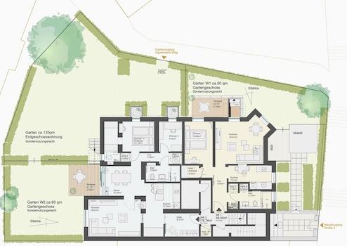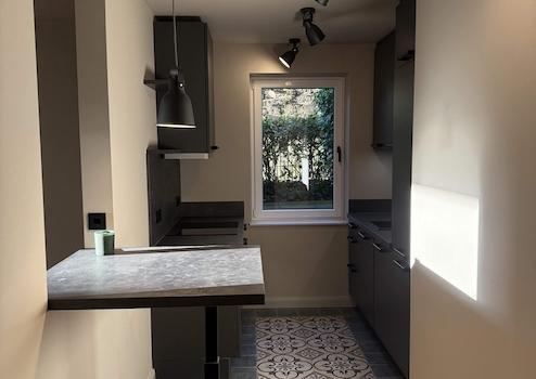 Die Wohnung wird 2025/26 saniert und befindet sich derzeit im Rohbau bzw. im Umbau. Geplant ist eine Ausführung, die sich in Gestaltung, Materialität und architektonischer Haltung an der bereits realisierten 2-Zimmer-Wohnung im Haus orientiert, siehe Fotos, ebenfalls Gartengeschoss. Gleichzeitig bietet dieser frühe Bauzustand die Möglichkeit, individuelle Wünsche der zukünftigen Eigentümer:innen noch aufzunehmen – insbesondere in Bezug auf Oberflächen, Fliesenformate, Sanitärobjekte, Küchenausführung und Ausstattungsdetails.