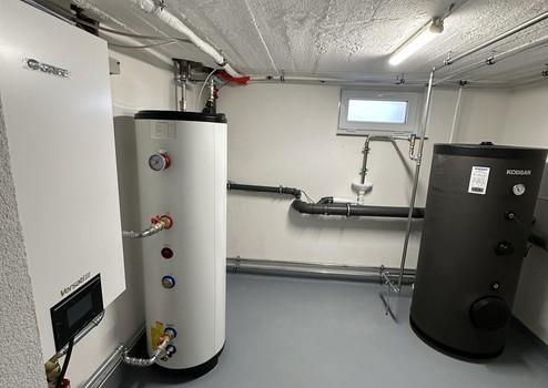 •Wärmepumpe (12 kW) mit Fußbodenheizung