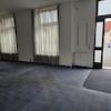 Erdgeschoss rechts, ca. 41 m² Gewerbe: vorne Laden (Teppich) Decke 0,5 m abgehängt, kleiner Raum (PVC), WC, 1 m bis Bürgersteig gehört zum Grundstück