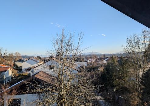 Unter dem Dach verbirgt sich eine wahre kleine Perle: Die voll ausgebaute, etwa 60 Quadratmeter große Zwei-Zimmer-Wohnung ist mit einer modernen Einbauküche und erneuerten Dachfenstern ausgestattet. Das Glanzstück ist hier zweifellos der traumhafte Alpenblick, den Sie durch die helle Fensterfront jeden Tag aufs Neue genießen dürfen.