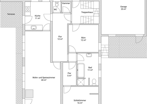 Der vollständig ausgebaute Keller des Hauses bietet Ihnen nochmals reichlich Platz. Neben einer Waschküche finden Sie hier drei vielseitig nutzbare Hobbyräume. Diese sind teilweise beheizt, verfügen über Tageslichtfenster zum gemütlichen Innenhof und bieten ebenfalls einen Zugang nach draußen. Bei Bedarf können hier auch weitere sanitäre Anlagen unkompliziert installiert werden.