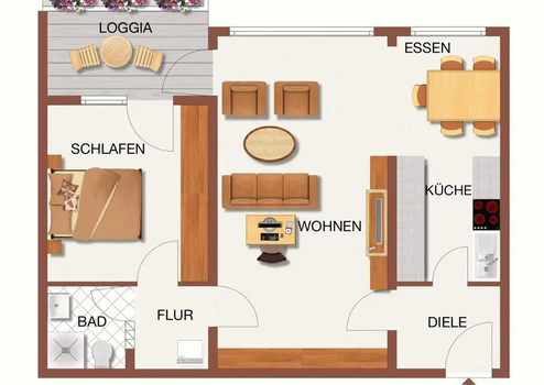 Abgerundet wird dieses Angebot durch die sehr gemütliche Loggia, die sowohl vom Wohnzimmer als auch vom Schlafzimmer aus erreicht wird und zum Entspannen und Verweilen einlädt sowie das praktische, der Wohnung zugeordnet.