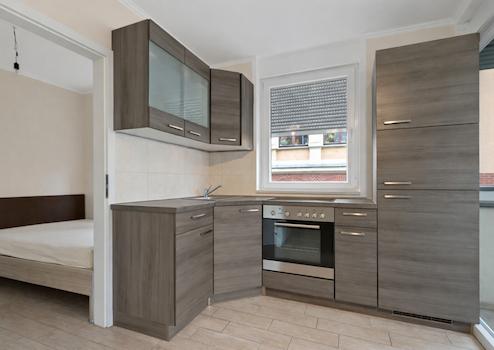 Die Wohnung liegt in einem sehr gepflegten Mehrfamilienhaus und bietet modernen Wohnkomfort. Der offene Wohnbereich mit integrierter Einbauküche schafft eine einladende Atmosphäre und gewährt direkten Zugang zum großzügigen Balkon. Das Schlafzimmer hat eine angenehme Größe. Hier können Sie ein Bett und ein Schrank stellen.