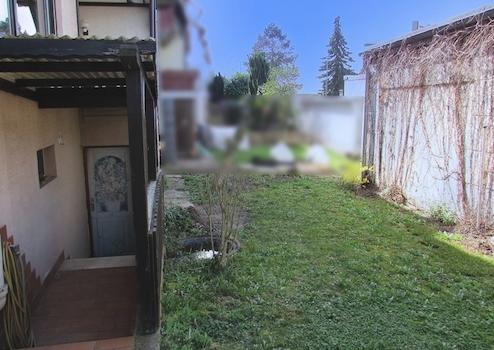 - kleiner Vorgarten und kleines Rasenstück hinter dem Haus mit Kellerzugang