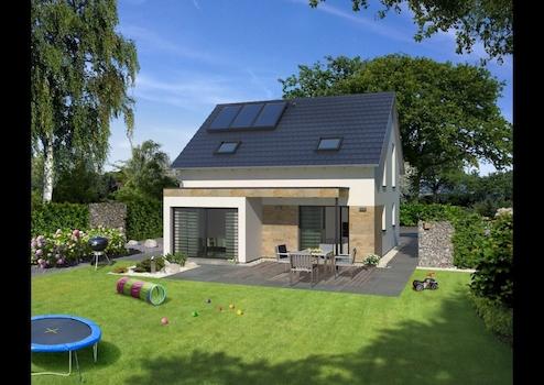 Der Hausentwurf ist gekennzeichnet von einer klassischen Architektur und punktet in der Grundrissgestaltung mit 3 Schlafzimmern, einem traumhaften Bad und einem WC für die Besucher im Erdgeschoss. Das Erdgeschoss bietet einen Wohn-/Ess- und Kochbereich, der über die Anordnung von Terrassentüren, die an drei Hausseiten verteilt sind, viel Tageslicht in die Räume bringt. Im Obergeschoss befindet sich das Schlafzimmer mit Ankleide, 2 große Kinderzimmer und das traumhafte Bad.