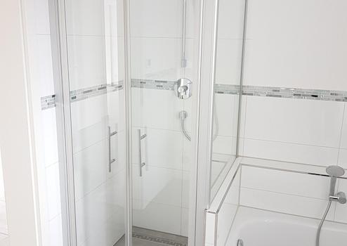 •Wellness-Bad: Das helle Badezimmer ist sowohl mit einer Dusche als auch mit einer Badewanne ausgestattet.