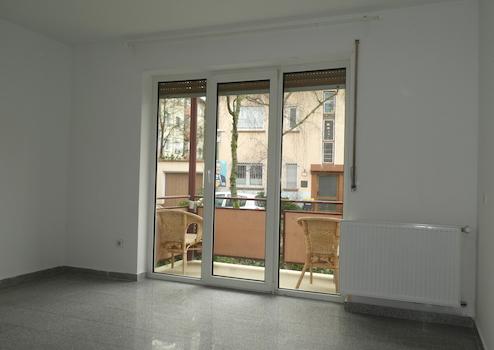 Die Wohnung verfügt über zwei gut geschnittene Zimmer, die durch große Fenster reichlich Tageslicht erhalten. Der Wohnraum profitiert von den hochwertigen Fliesenböden, die sich durch Langlebigkeit auszeichnen. Ein Balkon erweitert den Wohnbereich nach außen und bietet zusätzlichen Freiraum.