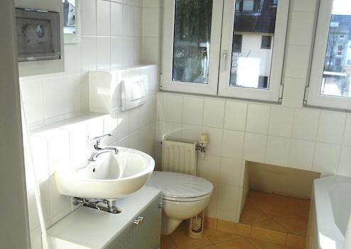 Die Wohnung hat ein Bad mit Fenstern, eine Küche (leer, m. Anschlüssen) ein- und ausklappbaren Balkon, Wohnzimmer, Schlafzimmer und weiteres kl. Zimmer; und ist so bestens geeignet für einen nicht mehr so jungen Single. Gas-Etagenheizung (RE v. Energieversorger) Kelleranteil, Wasch-/Trockenraum.