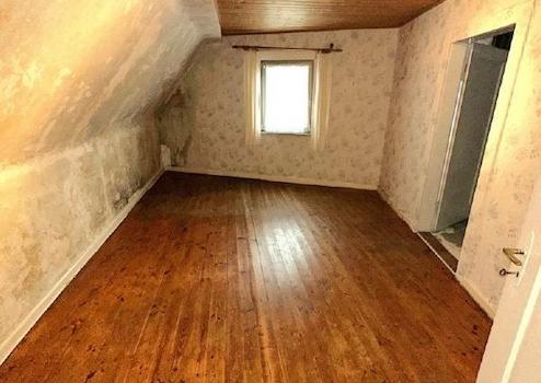 Es sind teilweise noch echte Holzdielenböden erhalten, die mit überschaubarem Aufwand aufbereitet werden könnten. In anderen Räumen wurden die Bodenbeläge bereits bis auf den Estrich entfernt.