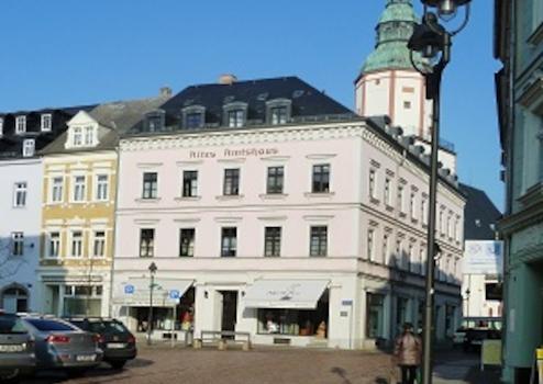 Das alte Amtshaus befindet sich in guter, zentraler Lage auf dem Obermarkt im Stadtzentrum.