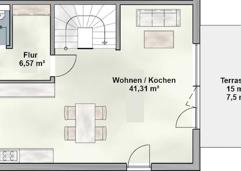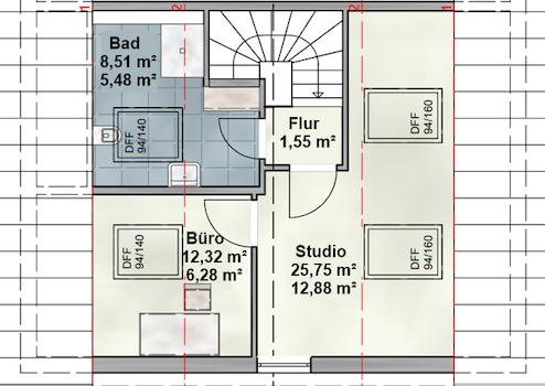 Die Doppelhaushälfte verfügt über insgesamt 3 Etagen und einen Keller (EG+OG+DG+Keller). Im Erdgeschoß befinden sich der große Wohn- Essbereich, die Küche, ein Flur, und ein WC. Im Obergeschoß sind 3 Schlafzimmer und ein Bad. Im Dachgeschoss sind das geräumige Studio, ein Büro und ein weiteres Bad. Im Keller sind ein großer Hobbyraum und zwei weitere Kellerräume. Die genaue Aufteilung ist noch genau bestimm- und variierbar. Das Haus verfügt über eine hochwertige Ausstattung und ist mit allen wichtigen Details ausgestattet. Zu diesen gehören z.B.: