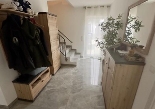Dank Fußbodenheizung im gesamten Haus genießen Sie jederzeit angenehme Temperaturen. Elektronische Jalousien an allen Fenstern bieten optimalen Sonnenschutz und Privatsphäre. Die Böden sind mit eleganten Marmor-Natursteinfliesen der Firma Italgraniti verlegt, die eine edle Atmosphäre schaffen.