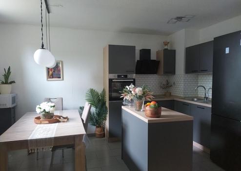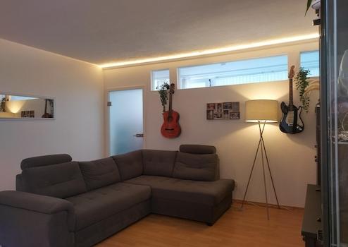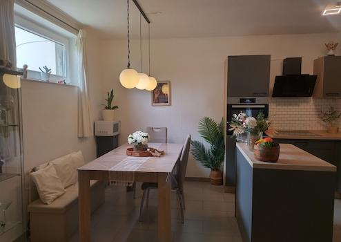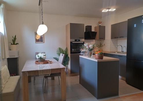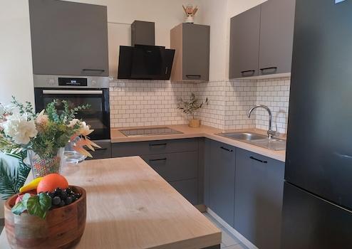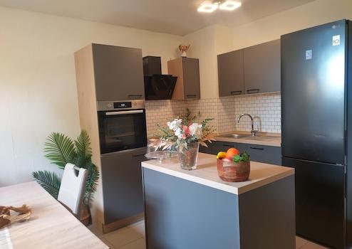 Die Einbauküche wurde neu installiert und fügt sich harmonisch in den offenen Wohnbereich ein.