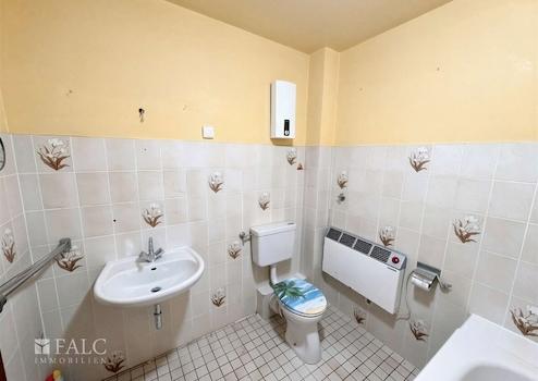 * Linoleum in den Wohnräumen und Fliesen in Bad und Flur