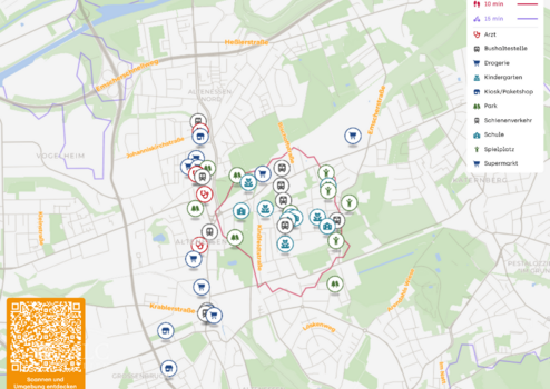 Die Umgebung bietet eine hervorragende Infrastruktur mit diversen Einkaufsmöglichkeiten, Supermärkten und Fachgeschäften, die bequem zu Fuß oder mit dem Fahrrad erreichbar sind. Auch zahlreiche Cafés, Restaurants und Freizeitangebote sind in der Nähe, sodass für jeden Geschmack etwas dabei ist.