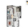 Beim Betreten der Wohnung gelangen Sie in die Diele, die einen einladenden ersten Eindruck vermittelt. Links von der Eingangstür befindet sich die praktische Küche, die genügend Platz für Ihre kulinarischen Ideen bietet. Direkt rechts finden Sie einen Abstellraum, der zusätzlichen Stauraum für Ihre Utensilien schafft. Das Wohnzimmer ist weiter rechts gelegen und begeistert mit einem eigenen Balkon, der ideal für entspannte Stunden im Freien ist. Neben dem Wohnzimmer befindet sich links das Gäste-WC, das für zusätzlichen Komfort sorgt.