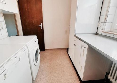 Zur gemeinschaftlichen Nutzung stehen ein Aufzug, ein Fahrradstellplatz im Keller sowie ein Waschraum und ein separater Trockenraum zur Verfügung. Zusätzlich gehört ein eigener Kellerraum (Lattenkeller abschließbar) zur Wohnung.
