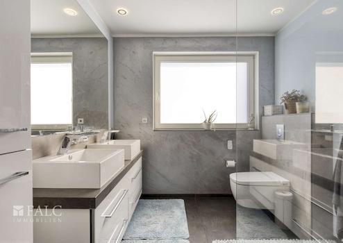 - Hauptbadezimmer saniert mit Villeroy & Boch Badmöbeln sowie italienischen großflächigen, hochwertigen Feinsteinzeug (2019)