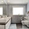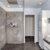 - ein stilvolles Badezimmer mit offener Dusche und zwei Waschbecken, das gemeinsames Nutzen ermöglicht und dennoch jedem seinen eigenen Bereich lässt