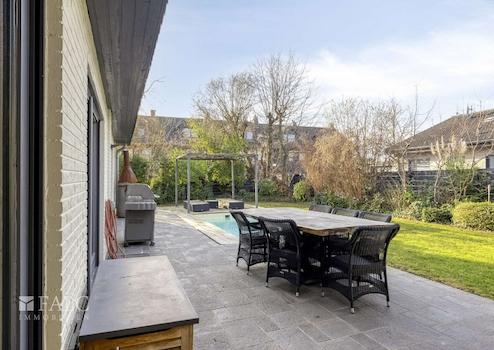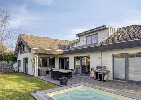 In begehrter Wohnlage von Pulheim, unweit von Köln, präsentiert sich dieser exklusive Bungalow mit separater Einliegerwohnung auf einem ca. 695 m² großen Grundstück. Ergänzt wird dieses wunderschöne Zuhause durch einen beheizbaren Pool und eine Doppelgarage. Weitere Stellplätze bieten gute Parkmöglichkeiten.