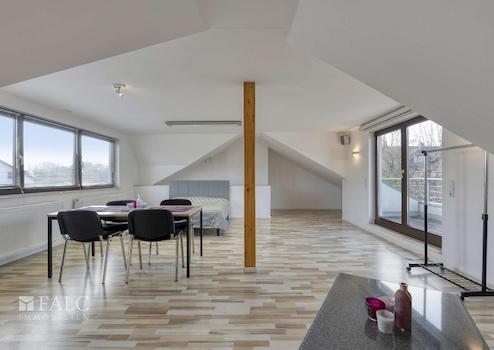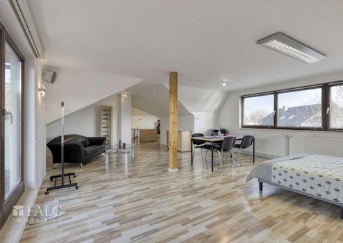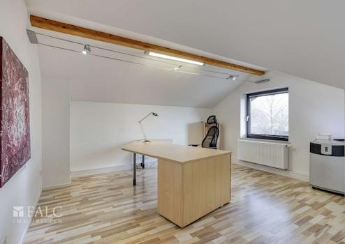 - Obergeschoss: zwei gut aufteilbare Bereiche mit Loggia, ideal für Büro-, Praxis- oder Ateliernutzung