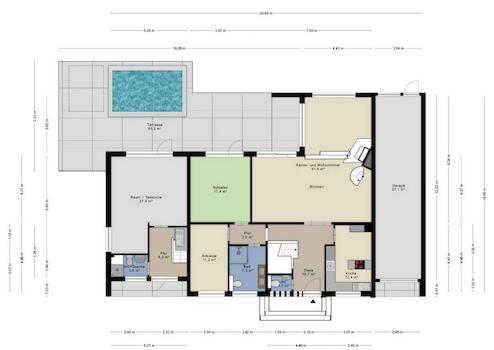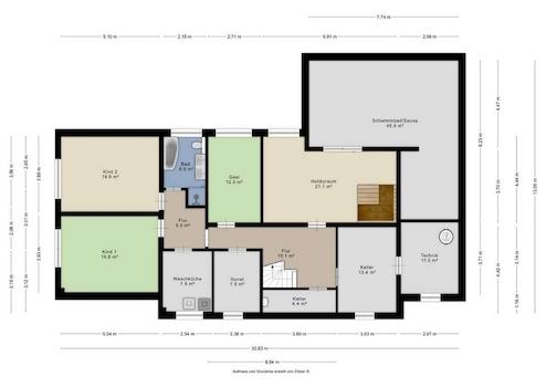 Ergänzt wird dieses Raumangebot durch zusätzliche Flächen von 128,10 m², die vielfältige Möglichkeiten eröffnen: Ein Waschraum, ein Abstellraum, ein Technik- bzw. Versorgungsraum, ein Arbeits- und Heizraum, eine Sauna mit Fitnessbereich sowie ein Indoor-Pool schaffen ein komfortables und zugleich exklusives Wohnambiente. Der Poolbereich bietet zudem Ausbaupotenzial und kann individuell weiterentwickelt werden.